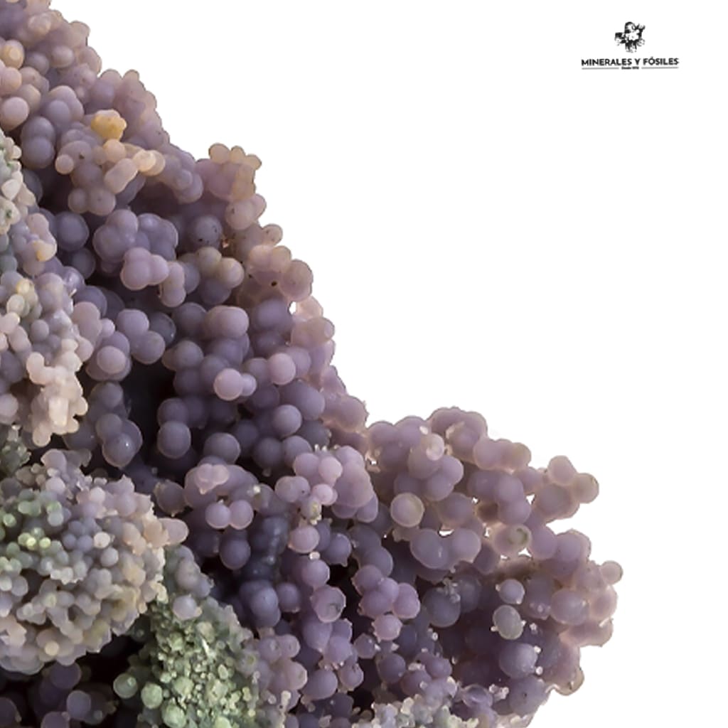 Espectaculares agregados globulares de color lavanda que forman una figura única y estética. A este tipo de Calcedonia se le conoce como "rácimo de uva".